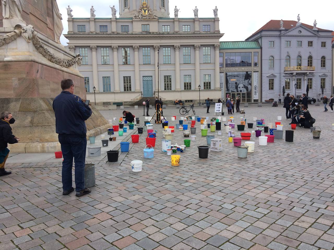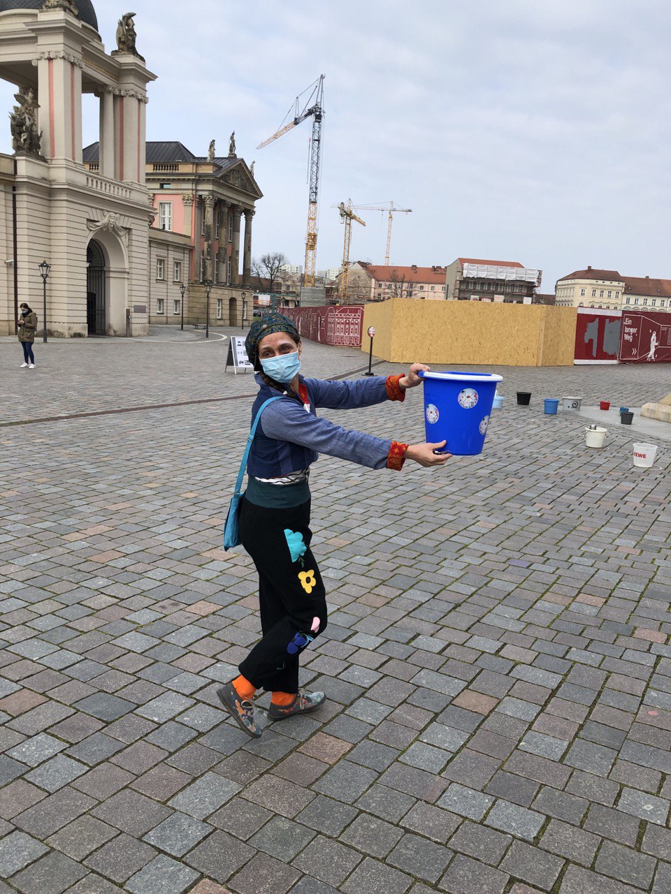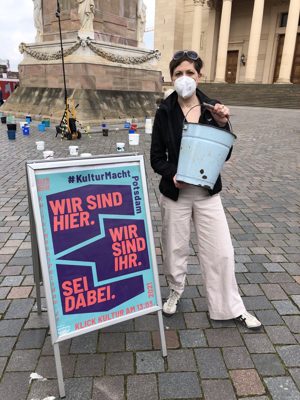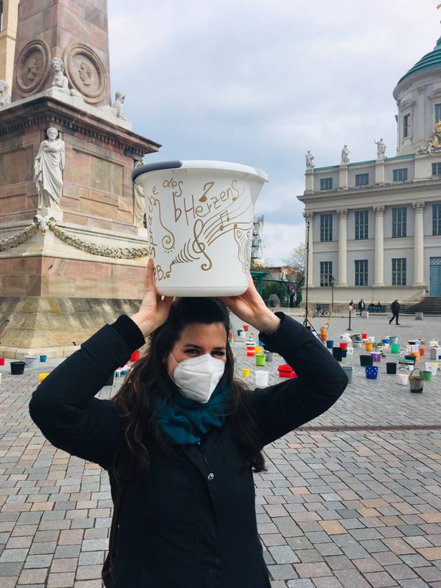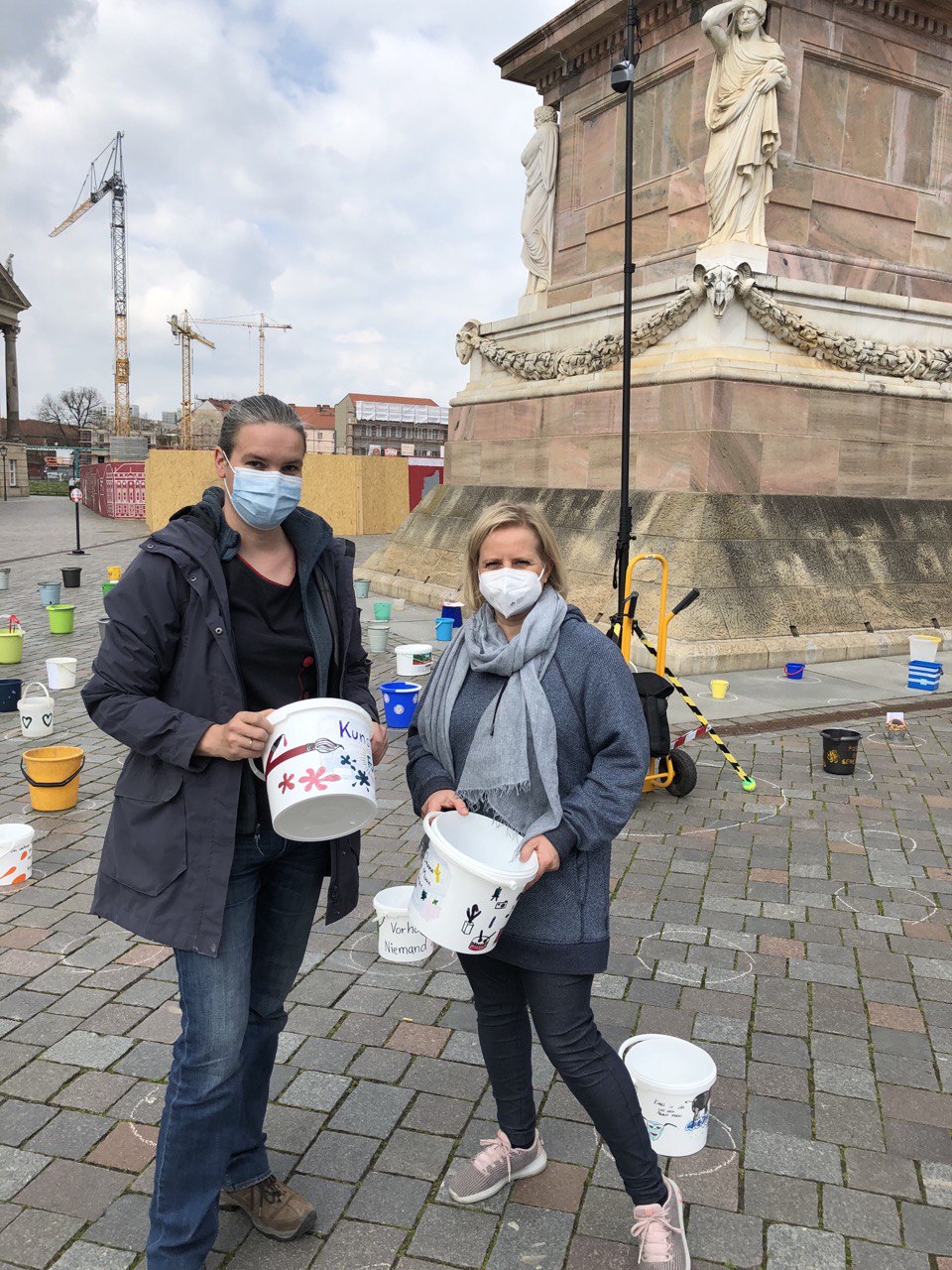 Wir laden daher am 1. Mai zwischen 09:00 und 16:00 Uhr Potsdamerinnen und Potsdamer zu einer „demonstrativen“ Aktion am Alten Markt ein. Nach dem Motto #EimerweiseKunst, werden Künstler:innen und alle Menschen, die ein Zeichen der Solidarität setzen wollen, aktiv, indem sie je einen Eimer zum Alten Markt bringen, diesen in einem wachsenden Kreis um den Obelisken aufstellen und dann wieder gehen.